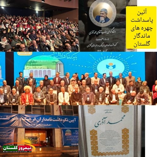 مراسم #نکوداشت نامداران گلستان با حضور جمعی از مسئولان فرهنگی، هنری و رسانه‌ای کشور برگزار شد. در این آیین باشکوه، #استاد_محمد_آذری، پژوهشگر و فعال فرهنگی و بنیان‌گذار #بنیاد_نیمروز، به عنوان یکی از چهره‌های ماندگار استان گلستان از حوزه رسانه و مطبوعات معرفی و توسط لوح تقدیر وزیر فرهنگ و ارشاد اسلامی و تندیس و.. مورد #تقدیر قرار گرفت.